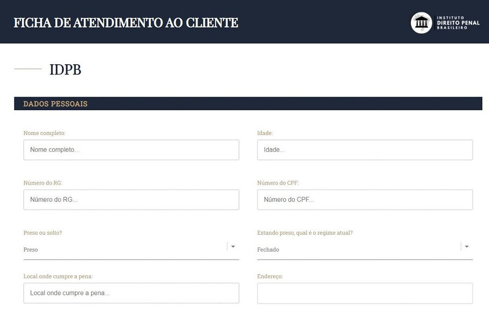Se você já aluno do Curso Decolando na Execução Penal, dentro do sistema do escritório virtual, você tem acesso a ficha de atendimento on-line que você pode personalizar e até imprimir.